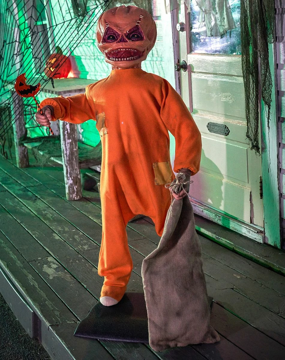 You’ll be able to show off your horror movie fandom with this officially licensed Sam animatronic! With interchangeable heads, you’ll be able to create the perfect look for your Halloween display. Holding his beloved lollipop, Sam moves back and forth making stabbing motions with his arm and laughs so creepily that it will scare anyone in sight!