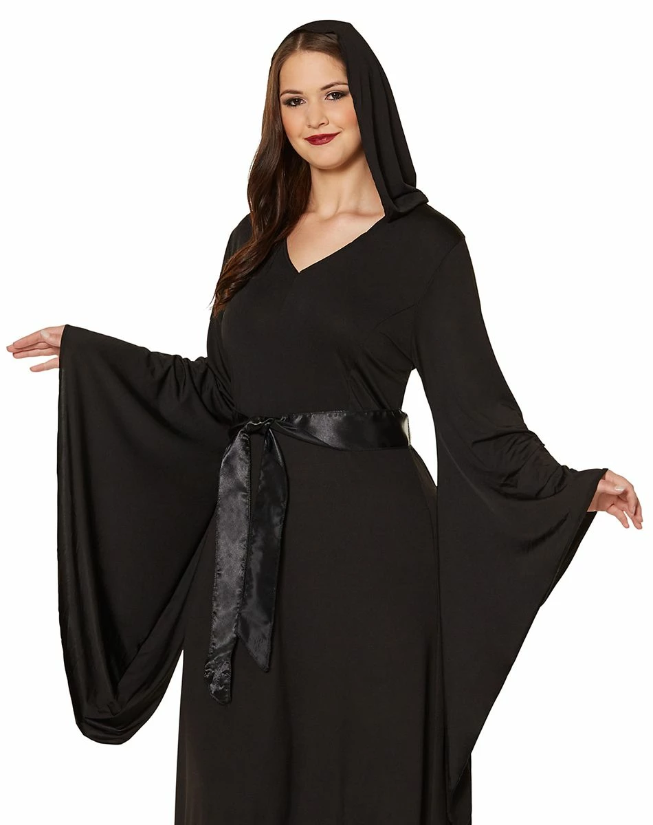 Become one with darkness when you put on this all-black hooded plus size dress. Whether you’re going for a classic angel of death or you want to be an evil overlord, the classic hooded and long skirt-style of this dress is versatile enough to work with almost any costume.