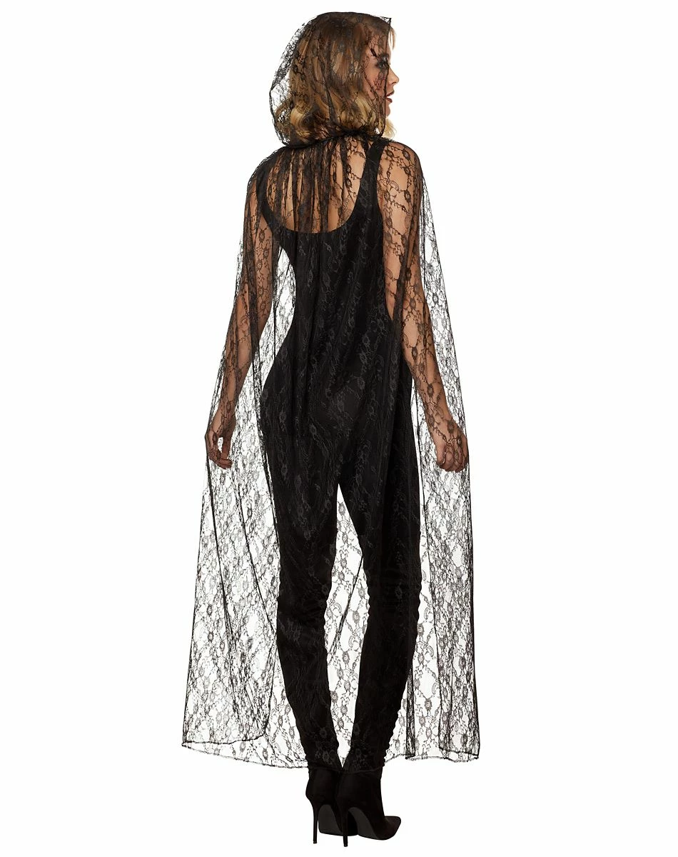This black lace hooded cape will add a gorgeous touch to your Halloween look. With a tie ribbon detail, you’ll be able to secure this cape for a perfect fit and add instant style to your costume.