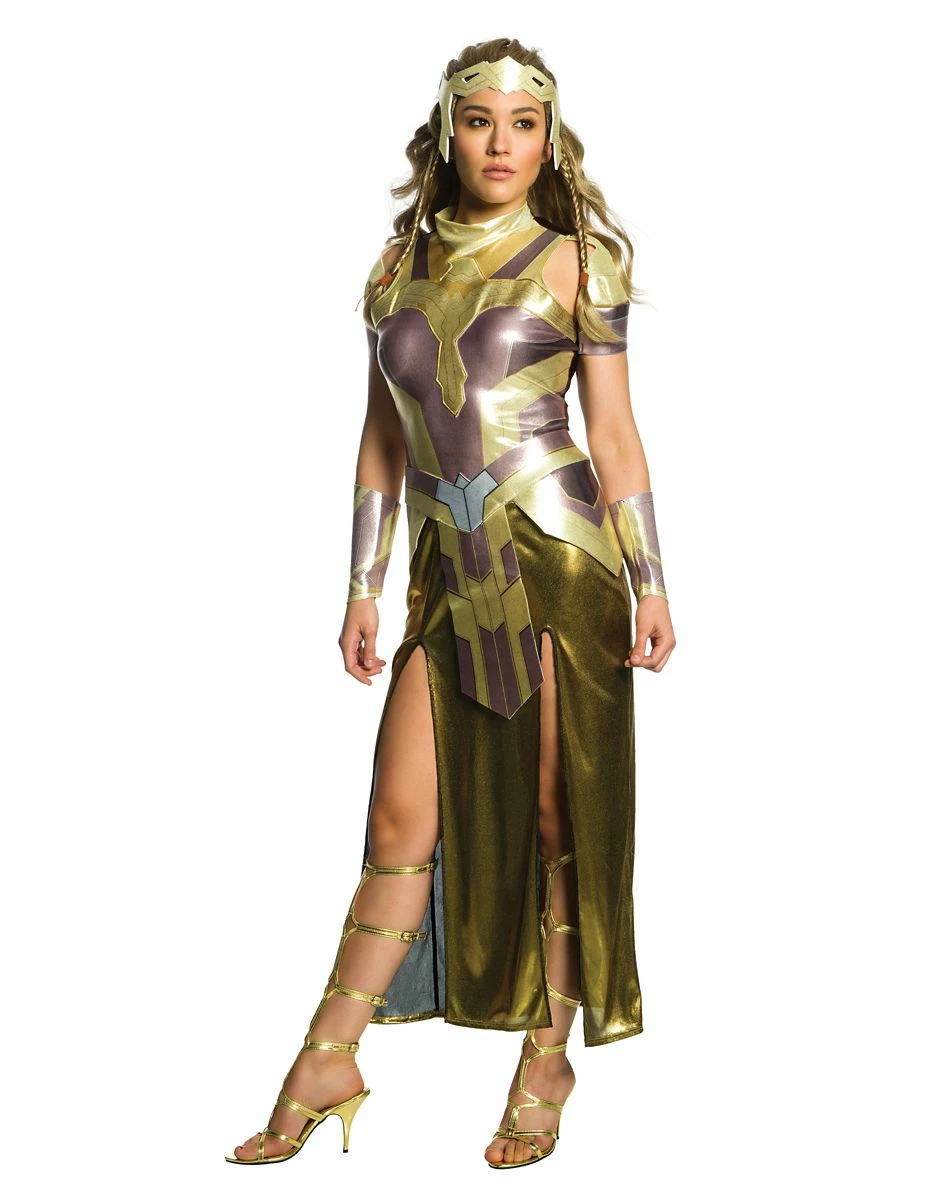 Become the Queen of the Amazons and the mother of Wonder Woman herself in this gorgeous Hippolyta costume. Featuring her signature green armored dress and crown headpiece, this costume is fit for a queen and perfect for any Wonder Woman fan!