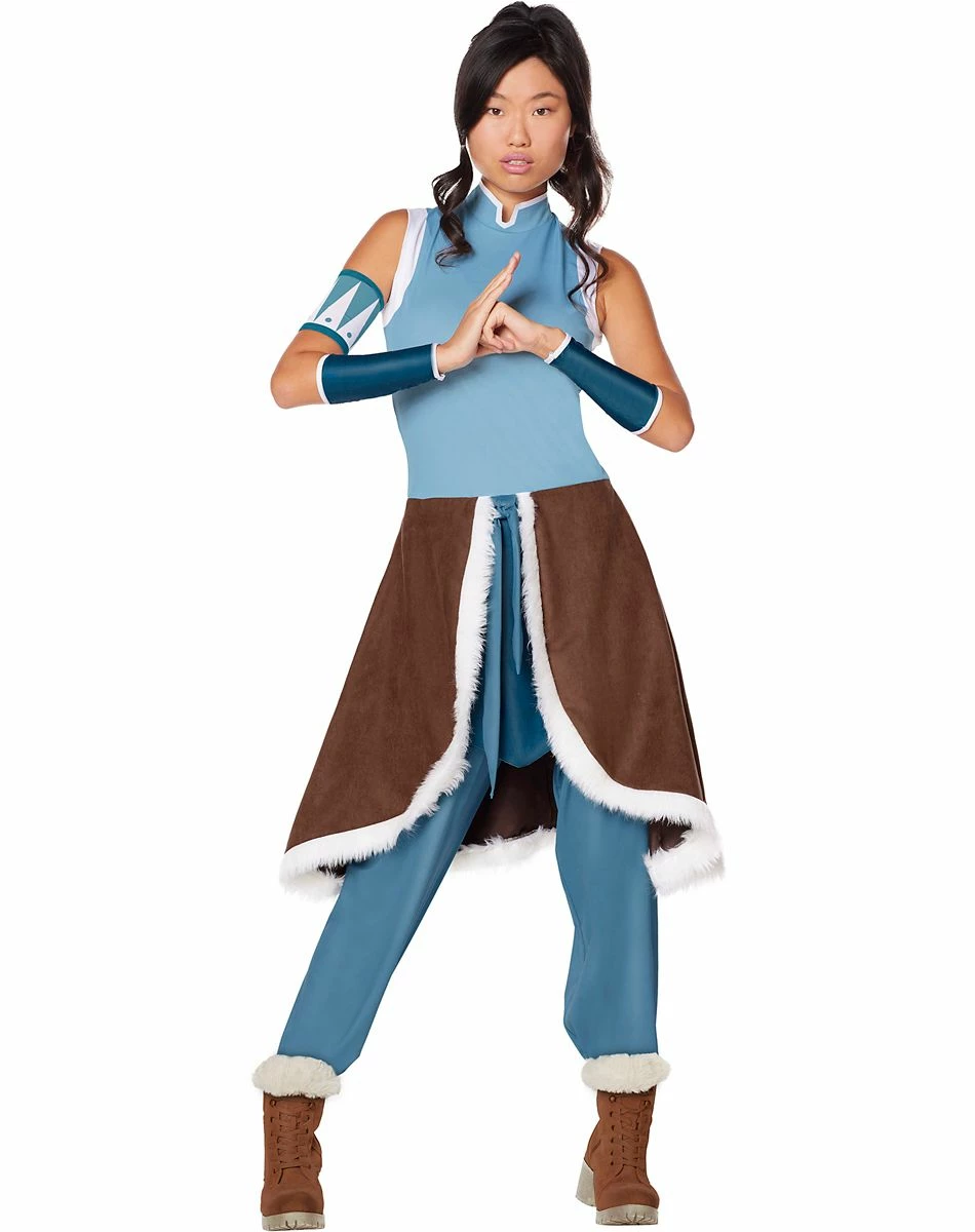 Embrace your strength and power in this officially licensed Avatar: The Legend of Korra costume! Korra strives for balance in all things. This Korra costume features a sleeveless blue jumpsuit with an attached skirt. Korra’s signature arm cuffs create an authentic and instantly recognizable look!