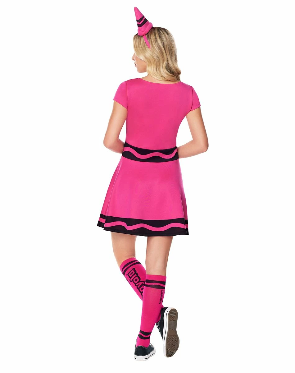 Take on Halloween in hot pink style with this Adult Razzmatazz Crayon Dress Costume! This officially licensed costume, which includes a Crayola-branded pink dress, a Crayola crayon headband, and matching pink socks, has everything you need to add the perfect pop of color to your Halloween look.