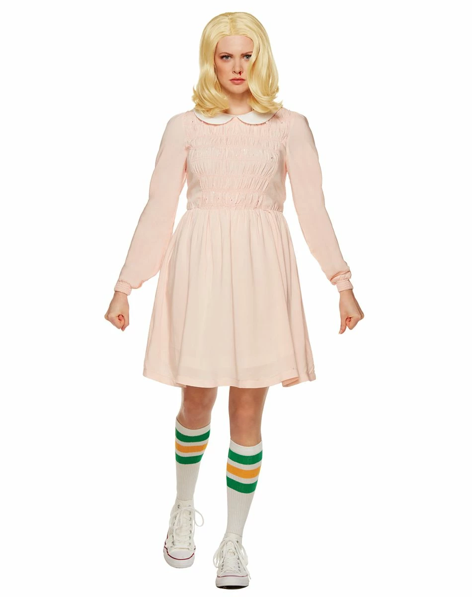 No worries, you’ll be able to escape crazy scientists this Halloween as Eleven! The pink, long sleeved dress with ruffled top and white collar makes it easier than ever to crush people’s brains, help the boys find their friend and obsess over waffles. So put on those psychokinetic abilities and represent the best character from Stranger Things.