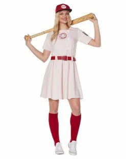 Step right up to the plate because it’s your turn to shine! With this officially licensed Rockford Peaches uniform costume from A League of Their Own, you’ll be a famous athlete in no time. The competition is getting heated, but you seem to be prepared! Don’t worry, your team is right by your side!