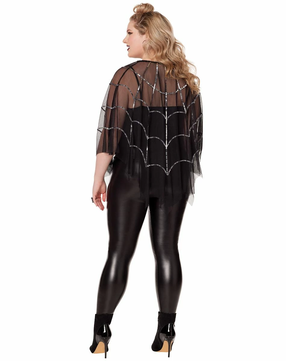 Hoping to find the perfect finishing touch to your Halloween costume? Look no further. This spider web poncho features glimmering sequins and will add a creepy-crawly accent to your look.