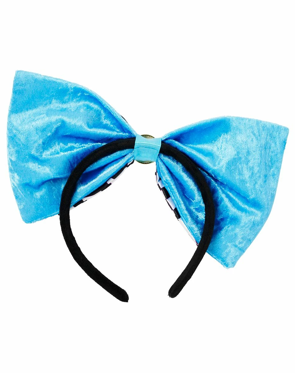 Complete your enchanting Alice costume and start your adventure with this Alice Checkerboard Bow Headband! This bold and colorful headband features a bright blue bow, black and white checkerboard detailing, and is centered with a clock charm. Turn some heads with this fun bow!