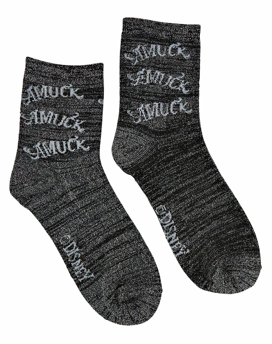 “Amuck, amuck, amuck!” These sparkly socks feature Sarah’s famous chant from Disney’s Hocus Pocus (which came much to the annoyance of her sister, Winifred). Run amuck on Halloween night with these officially licensed glittery crew socks! Just watch out for those wicked Sanderson Sisters!