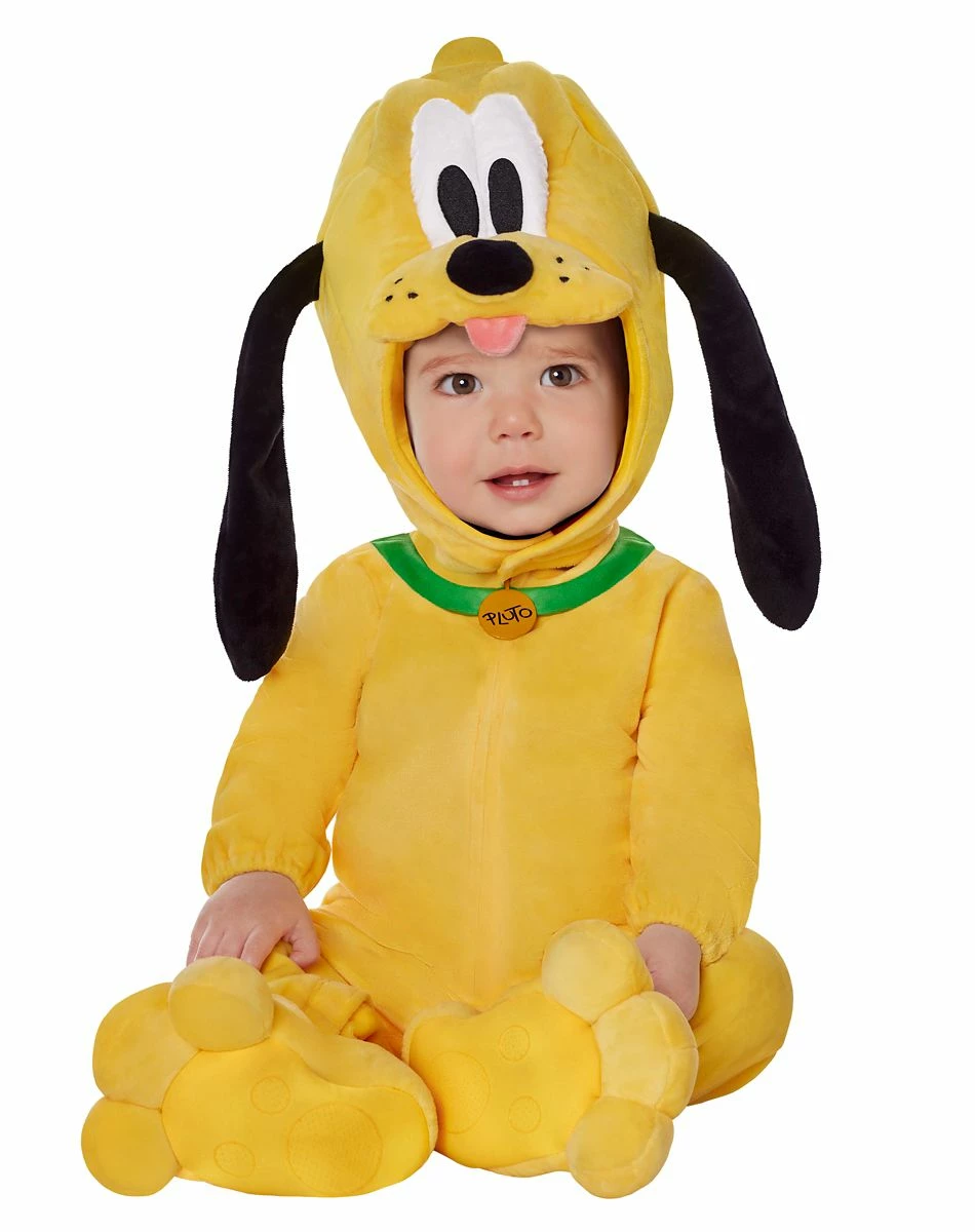 Your little one will look doggone adorable in this officially licensed Pluto costume! This super-soft Pluto costume features a zip-up jumpsuit with long sleeves, an attached black tail, built-in paw slippers, and a collar. A matching hood is adorned with Pluto’s friendly face and floppy ears!