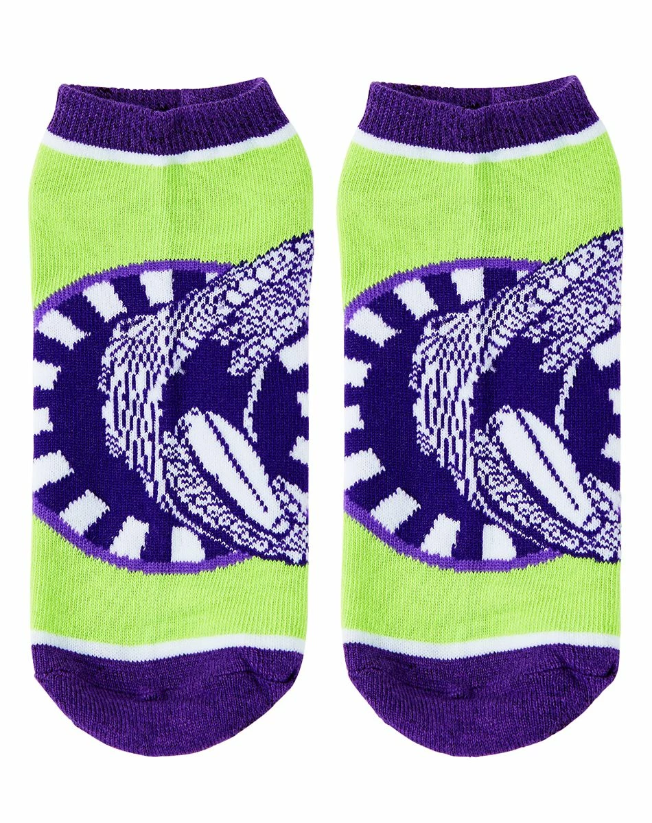 Add some colorful and fun style to your feet with these official Beetlejuice ankle socks! You can select among five different pairs, each featuring a different moment from this popular movie. These socks are perfect for any Beetlejuice fan.