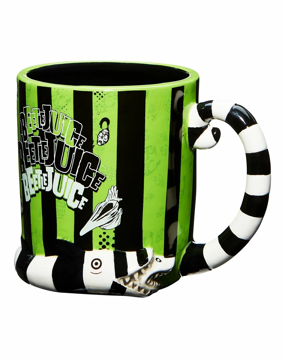 Did somebody say “Beetlejuice”? Start your day with a drink from this officially licensed Beetlejuice molded coffee mug and you’ll be ready for anything the day throws at you! Featuring a green and black striped design with a sandworm handle, this coffee mug is sure to always give you some Beetlejuice vibes.