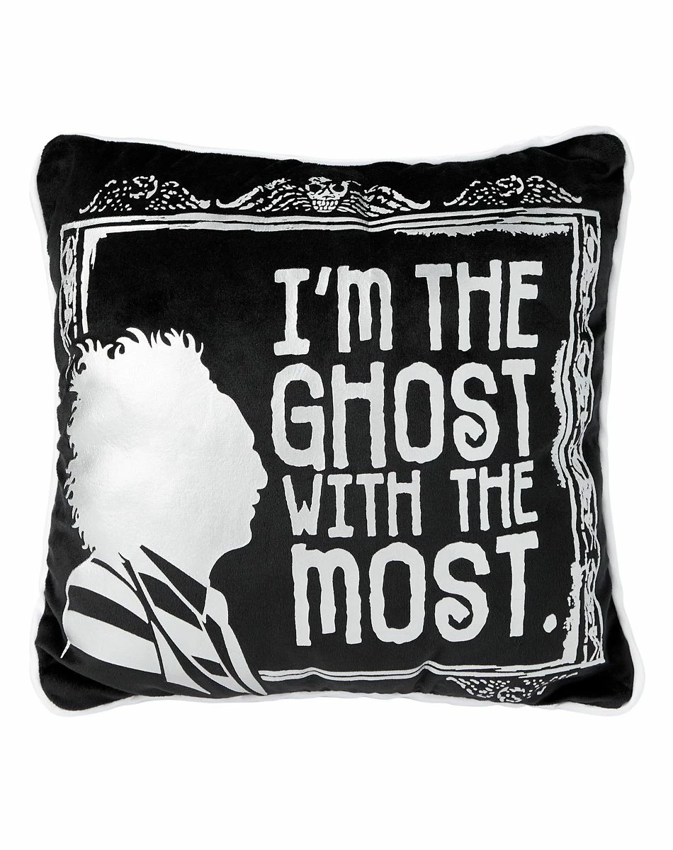 Make every room of your home honor your favorite movie with these official Beetlejuice pillows! These soft black and purple pillows have Beetlejuice quotes in silver saying “I myself, am strange and unusual” and “I’m the ghost with the most” along with Beetlejuice character silhouettes. They’re a must-have for any fan!