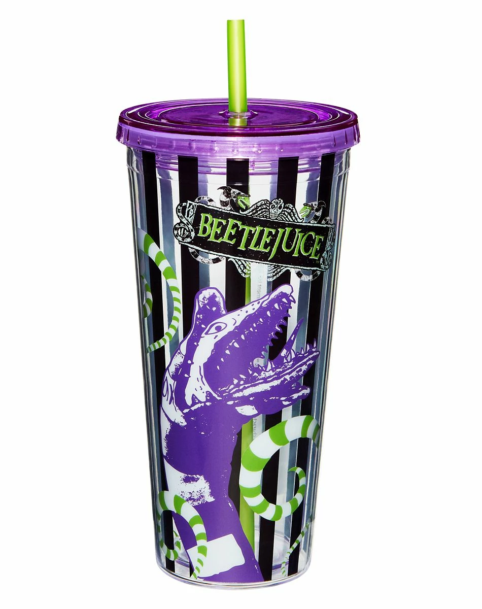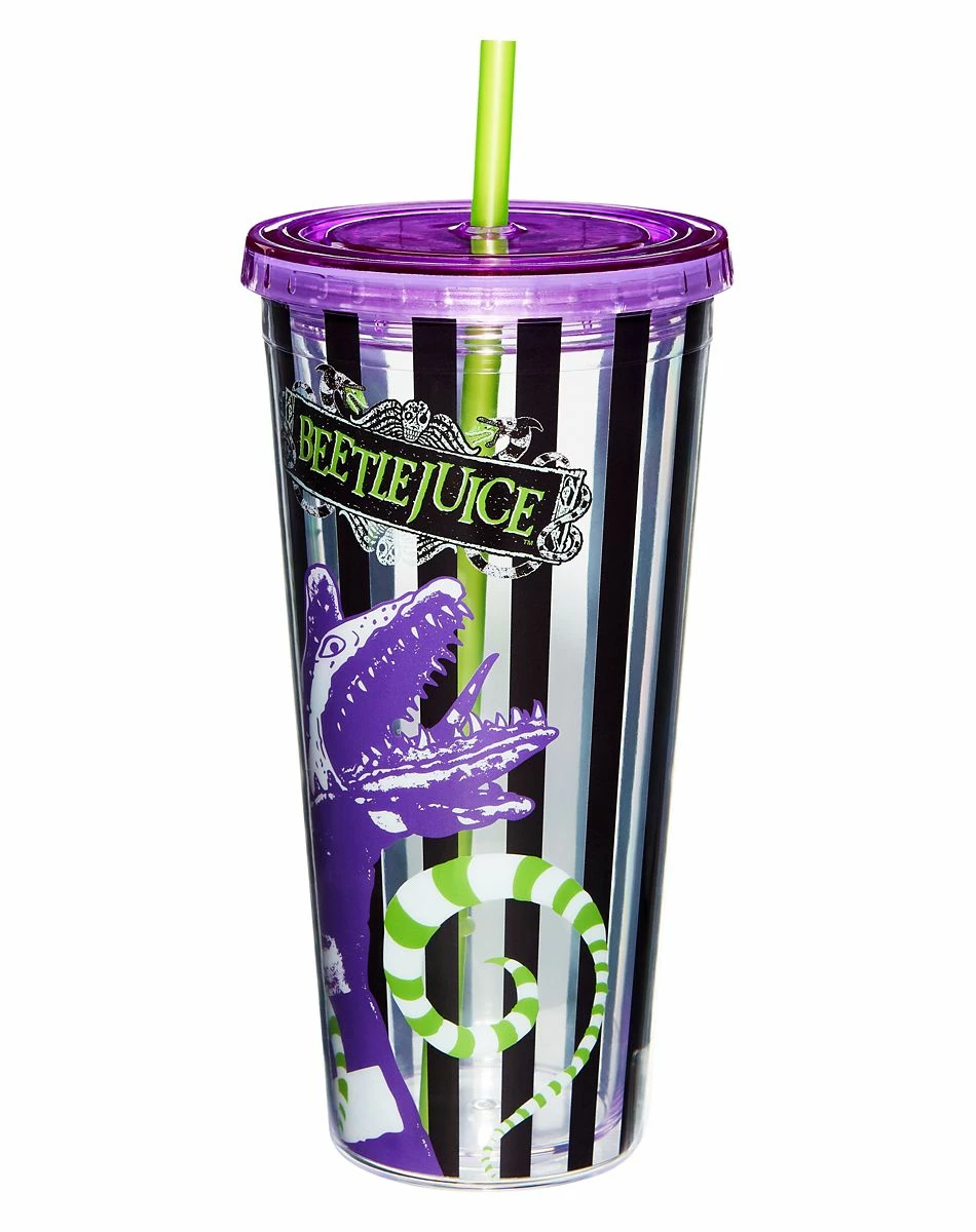 It’s easy to work up a thirst while eating all of that Halloween candy! Fill this Beetlejuice tumbler with your favorite beverage and keep the fun going all day long. With an included straw and lid, this Beetlejuice tumbler is a breeze to carry around town while you collect tricks and treats!