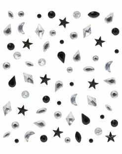 Give your Halloween look a celestial spin with these black and silver press on gem stones. These fun decals are in the shape of stars, moons, diamonds and circles. They’re sure to make your outfit even more festive.