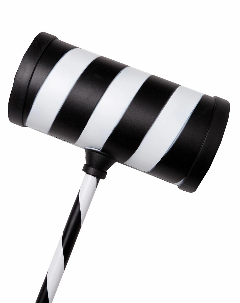 Smash this Halloween like the killer clown you are with this black and white striped hammer! The oversized weapon is perfect for completing your harlequin or jester look.