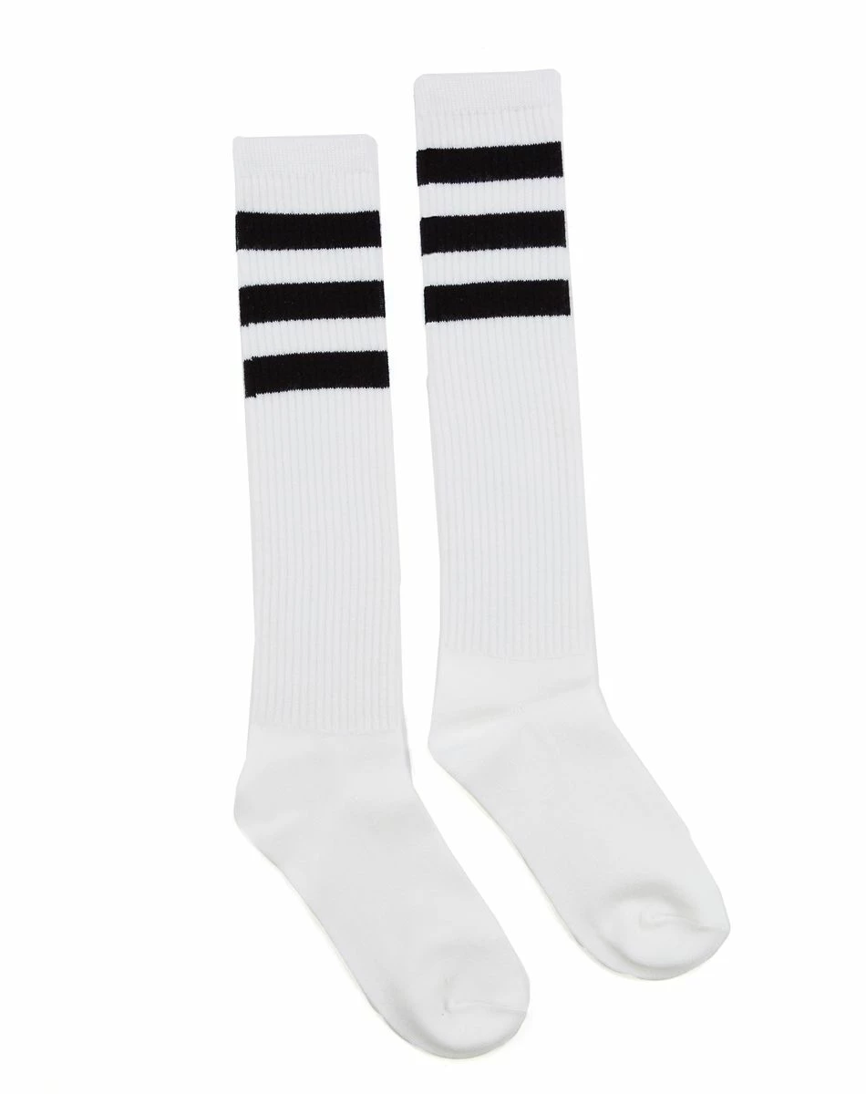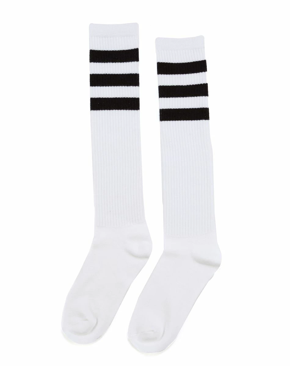 You’ll call the shots wearing these Black and White Referee Socks. Be fair when you sport these black knee high socks with three thick white stripes.
