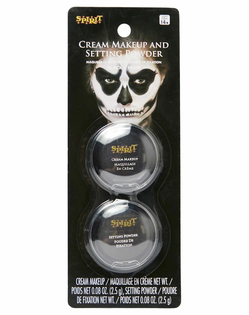Get the perfect spooky look with this black cream makeup and setting powder. You’ll easily get just the look you desire whether you want to be a vampire, wolf, clown or any other creature when you apply this easy-to-use makeup and setting powder. Transform yourself this Halloween so that no one will recognize you.
