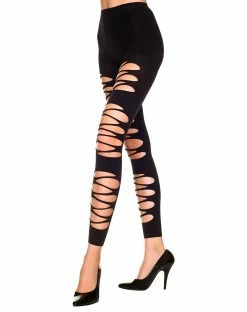 Show a bit of skin in the Black Cutout Front Tight. These black tights have large slashes along the thigh, upper knee and shin area.