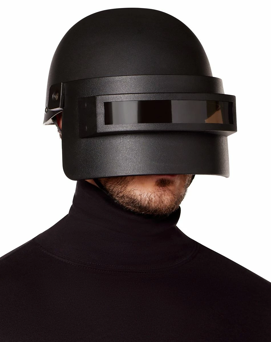 Everyone is wondering who’s under the helmet. This black helmet with an attached see-through eye shield makes you completely anonymous. You could be a secret superhero or something more sinister – it’s your call!