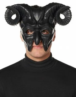 Give everyone a total fright this Halloween in this Black Horror Devil Half Mask! This scary mask is sure to invoke fear with its curled horns and freaky features.
