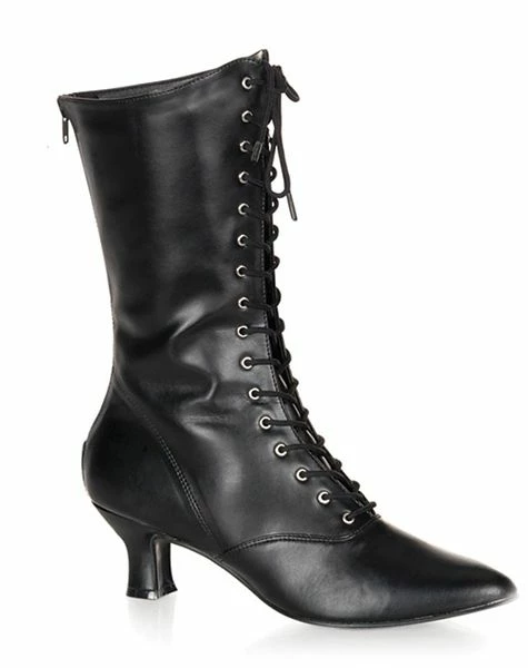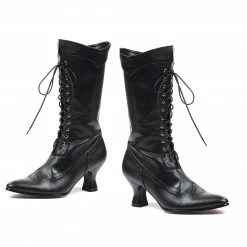 These black Victorian women’s boots are wicked cool. Complete your witch, wench or wanton woman costume with these unique boots. The laces are decorative because the boots have an inner side zipper opening for easy wear. Perfect for a racy saloon girl look when worn with stockings and garters!