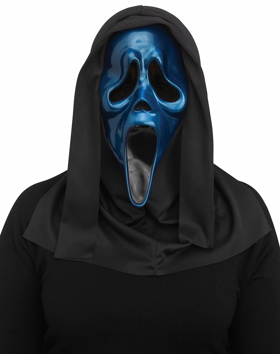Put an awesome twist on the classic Ghost Face ® costume when you wear this officially licensed blue metallic Ghost Face ® full mask. This colorful mask has an attached hood and will instantly transform you into the iconic horror villain.