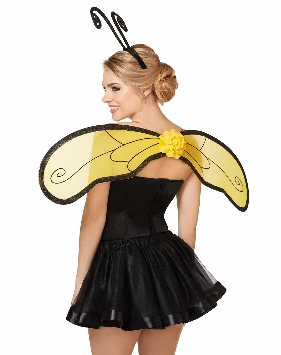 Accessorize your bumble bee costume with this headband and wing set. You’ll be the buzz of the night! Wings and headband feature glitter detail that will have you shining all night.
