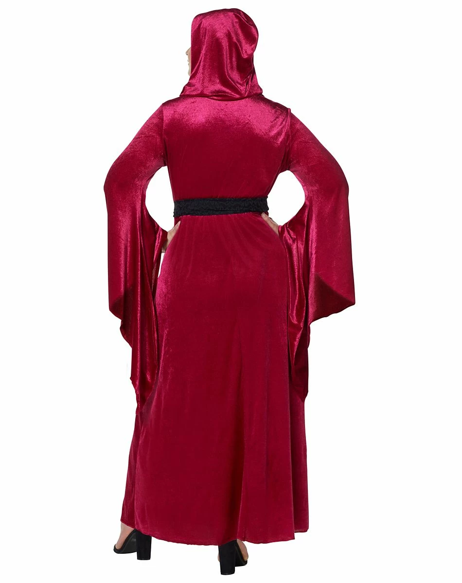 Let your imagination run wile when you transform yourself into anything you’d like with this burgundy velvet robe. This hooded robe features extra-large bell sleeves and a removable lace belt for added character. Whether you want to be a vampire or a devil, this robe is the staple to any Halloween costume this year!