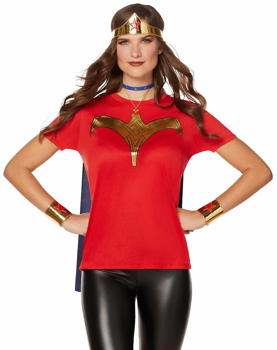Have no fear, Wonder Woman is here! Fight off those supervillains this Halloween wearing our exclusive t-shirt featuring an attached cape. You’ll feel absolutely heroic flying through the sky!