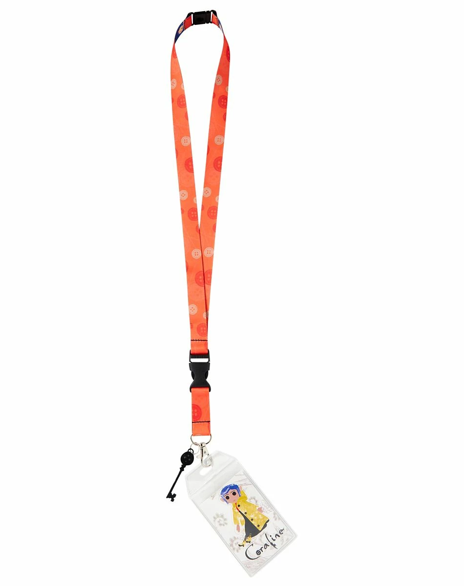 Bring the adventure with you when you carry this Coraline lanyard! This fun lanyard features an image of Coraline as well as two-sided strap featuring Coraline on one side and buttons on the other.