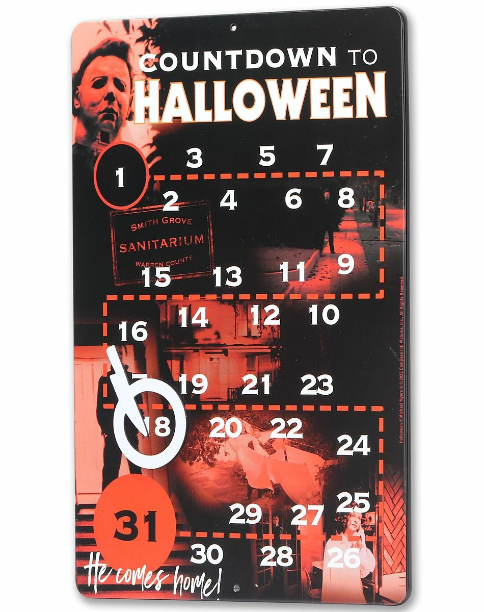 Only 31 more days left until Halloween! Count down the days until Michael Myers makes his return with this officially licensed Countdown to Halloween Sign. Any Michael Myers fan will love adding this Halloween themed countdown calendar to their home decor.