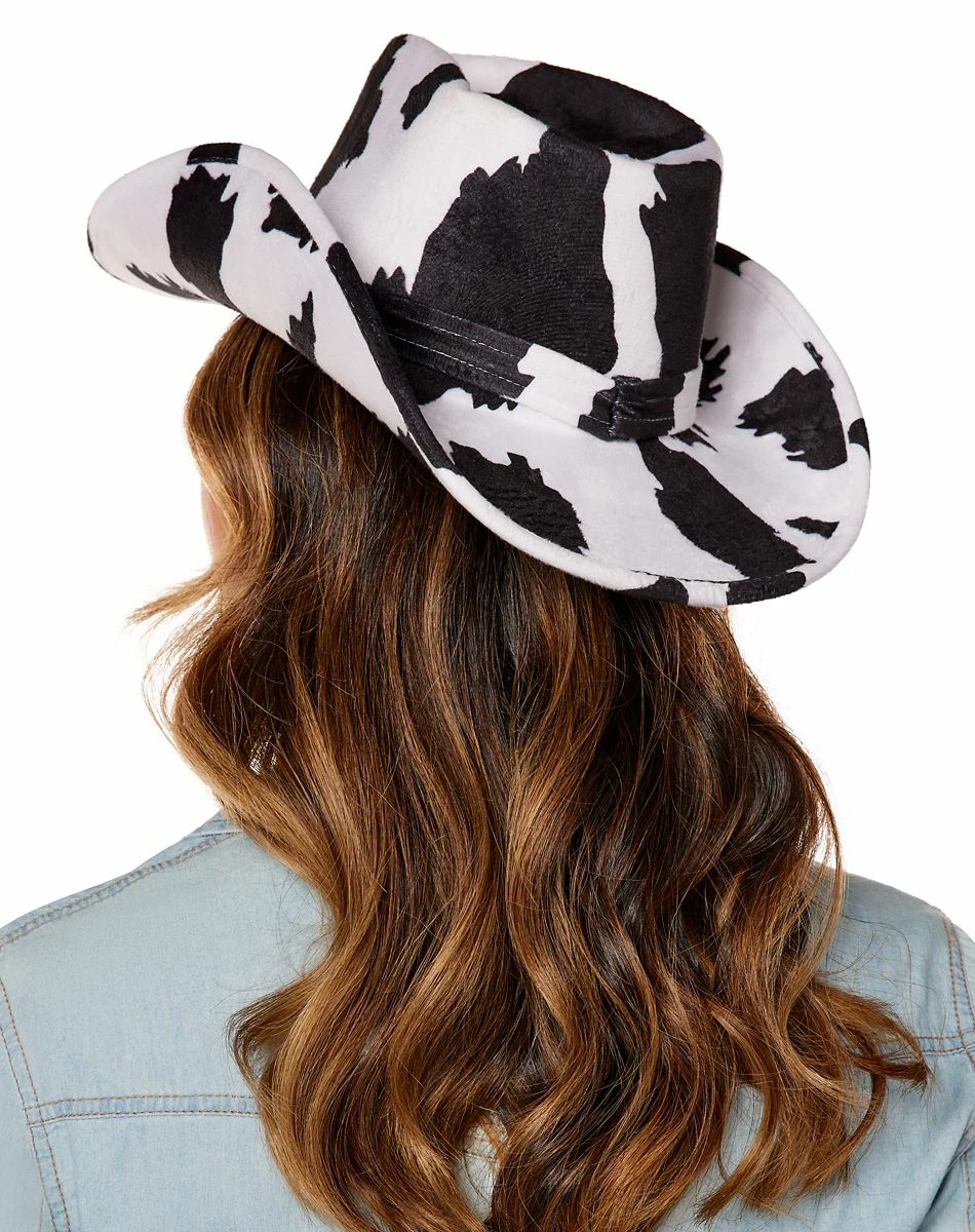 Howdy! Complete your perfect western ensemble with this Cow Print Cowboy Hat! This cowboy hat, which features black and white cow print detailing, will take your next western adventure to new heights.