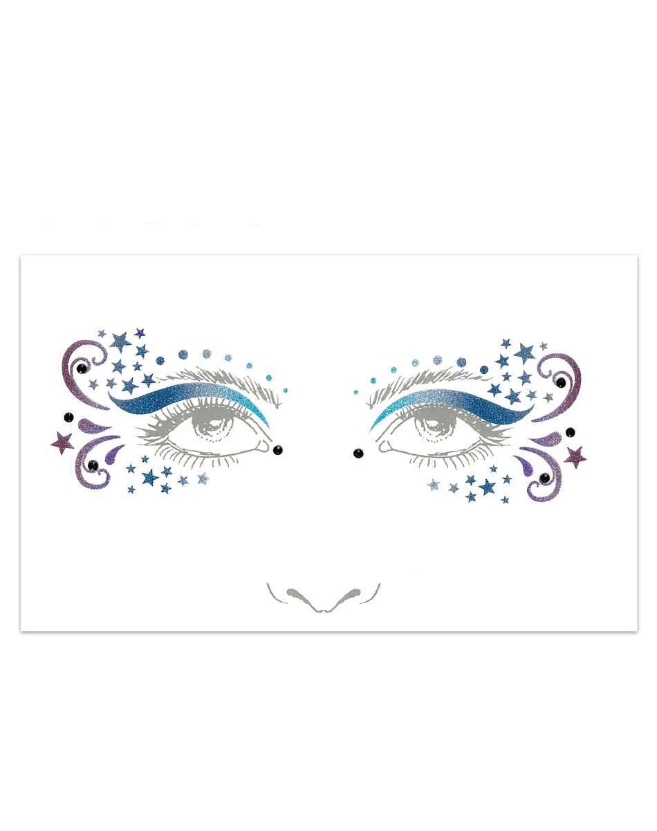 Complete your look with these decals from the dark side of the rainbow! With these face decals, featuring cool-toned stars and wisps, you’ll have everything you need for your dark unicorn ensemble. Even unicorns need to frolic on the dark side from time to time.