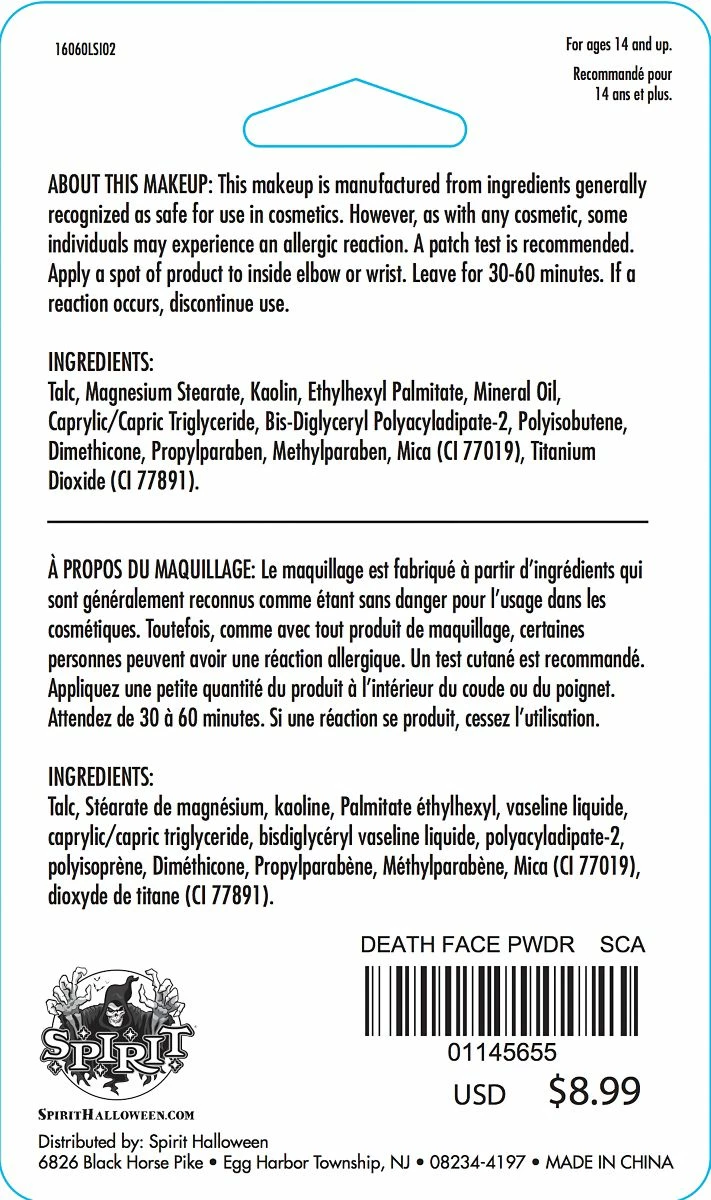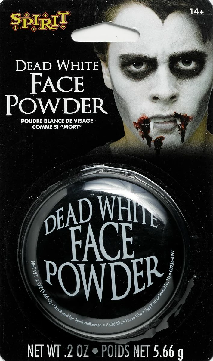 Get that ghostly look in minutes when you apply this Dead White face powder to transform your complexion in time for Halloween. Four out of five vampires recommend it.