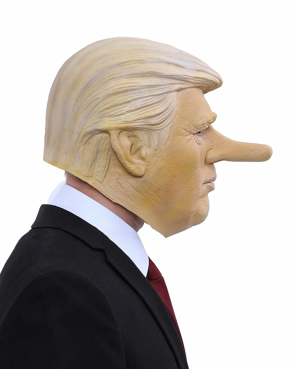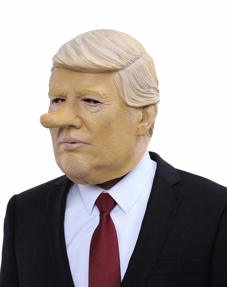 Complete any presidential look this Halloween when you put on this hilarious Donnochio Mask. With this mask on everyone will know when you are lying and when you are telling the truth. The long nose, and pouty face are sure to get some laughs at your next costume party!