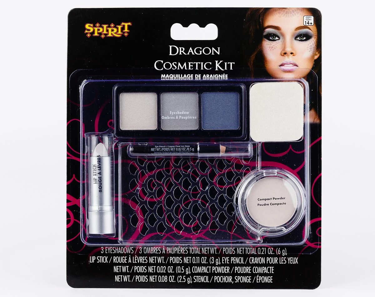 Show everyone just how magical and fierce you are with this makeup kit that is the perfect addition to your dragon look. This kit includes everything you need to give you that perfect dragon look for Halloween. Show everyone just how magical and fierce you are with this makeup kit that includes eyeshadow, lipstick, eyeliner, face powder, and a sponge.