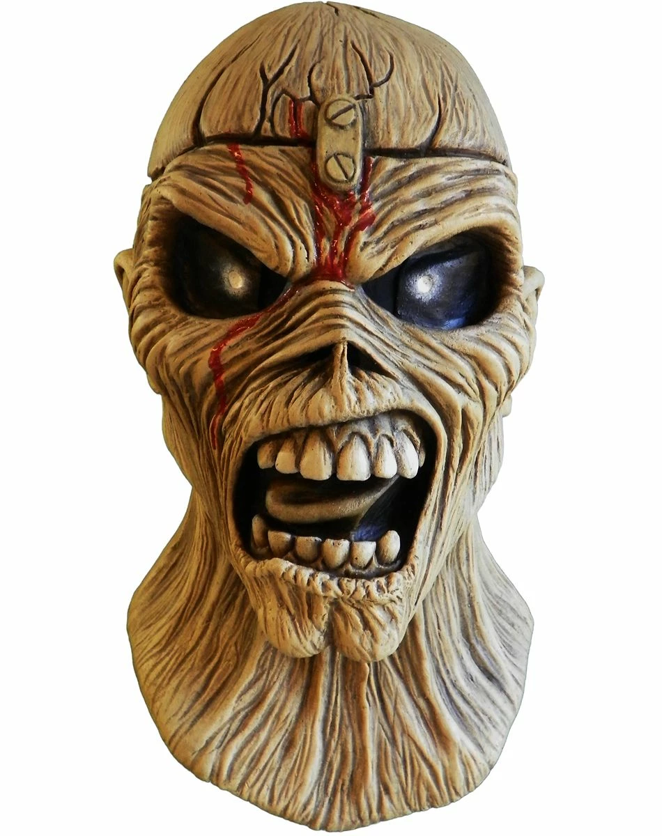 You’ll look like a heavy metal rock star in this Eddie mask! This full mask features fleshtone skin with a fake blood drip and an awful, twisted scowl. Join the Iron Maiden crew with this authentic Eddie the Head mask!