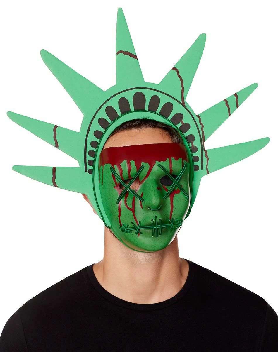 You’ll be ready to purge all night long this Halloween once you complete your costume with this officially licensed EL Wire Lady Liberty Half Mask. This half mask features green LED wires that actually light up and will have you looking straight out of the movie. Any fan of the Purge will instantly recognize this mask and you’ll be ready to go to any Purge party this Halloween.