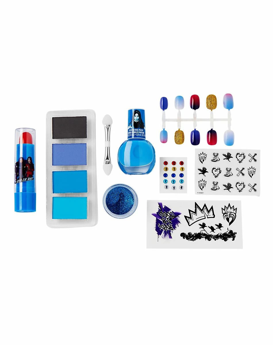 Top off your Descendants Halloween costume with this Evie makeup kit! From eye shadows to nail polish to glitter gel, lipstick, and more, you’ll have everything you need to look the part.