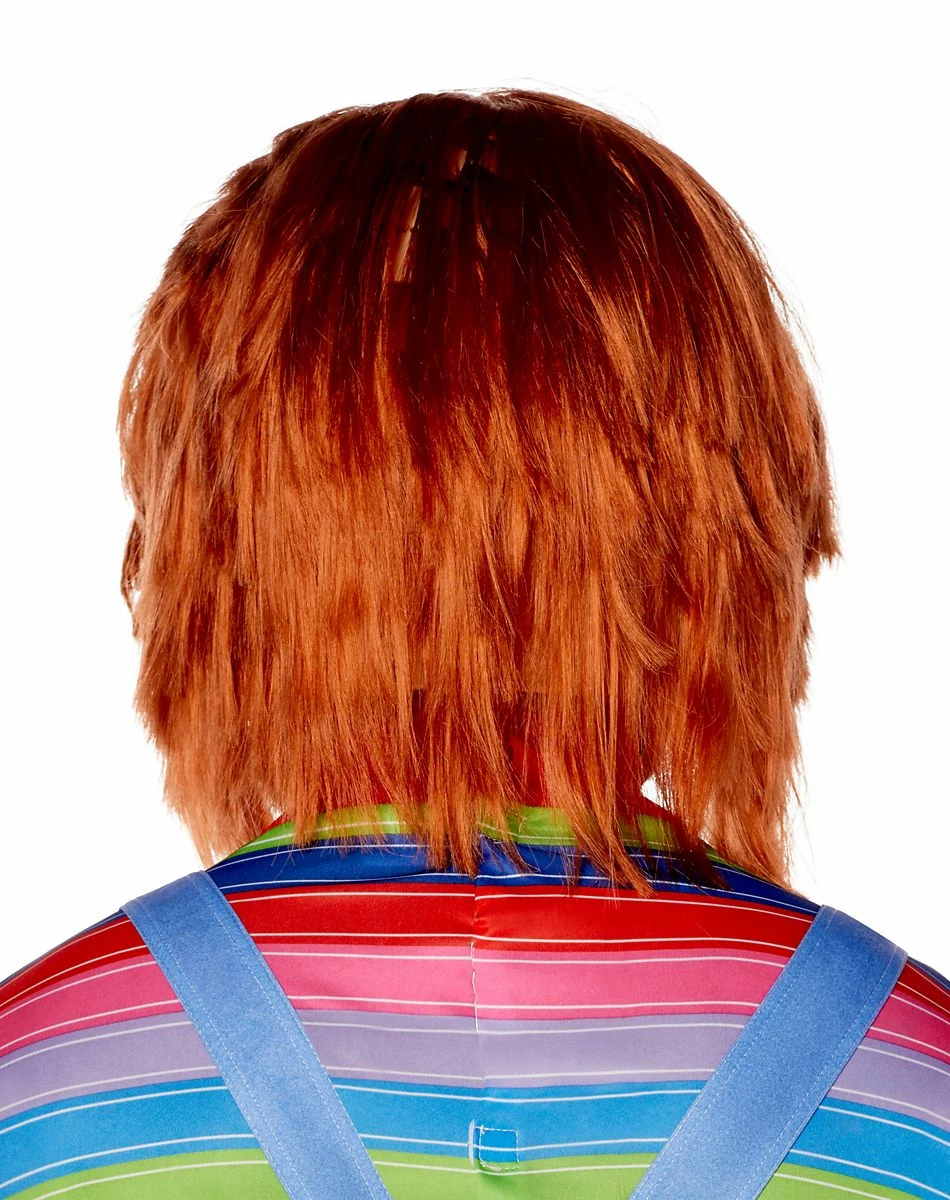 Looks like your Good Guy has gone bad! You’ll look just like an evil Chucky doll this Halloween once you put on this officially licensed Evil Chucky Mask. Chucky wasn’t always so bad, but teach him a couple violent tendencies, get him a knife, and this is the result you’ll get! You’ll love creeping out all your friends as this evil Chucky doll this Halloween!
