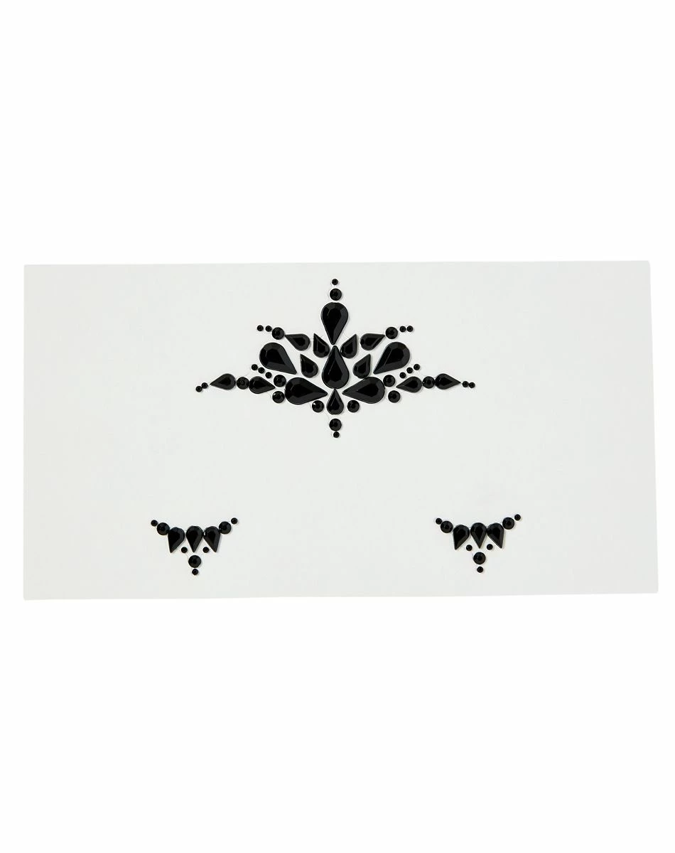 Put your best face forward with this fallen angel gem face decal! These dark and sparkly accents will add drama and beauty to your dark angel look.