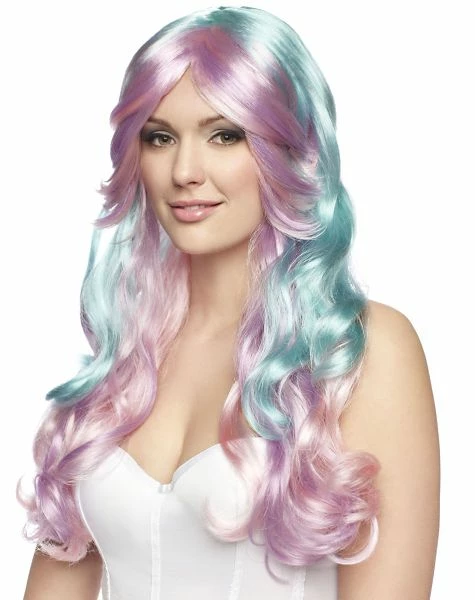 Mm, mm, mm. Your hair will look good enough to eat this Halloween. Your long luscious locks will shine with cotton candy colors of purple, pink and blue perfect for a sugar plum fairy costume. Make sure everyone gets a taste of you wearing this wig.