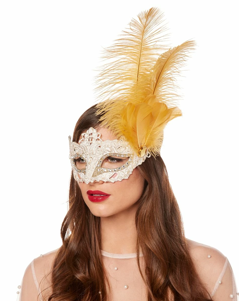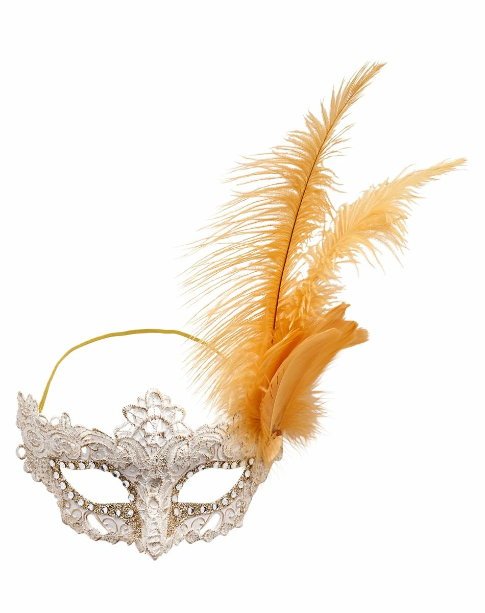 Complete any masquerade outfit with dazzling style when you add this Gold Feather and Lace Eye Half Mask to your costume. Bring this stylish mask out at the next costume party and your identity will always stay hidden.