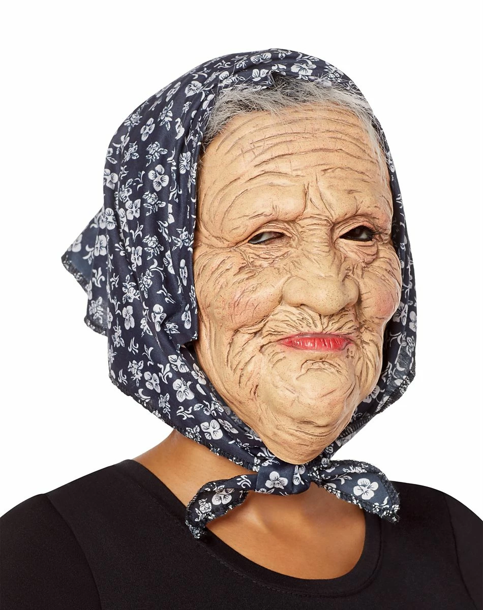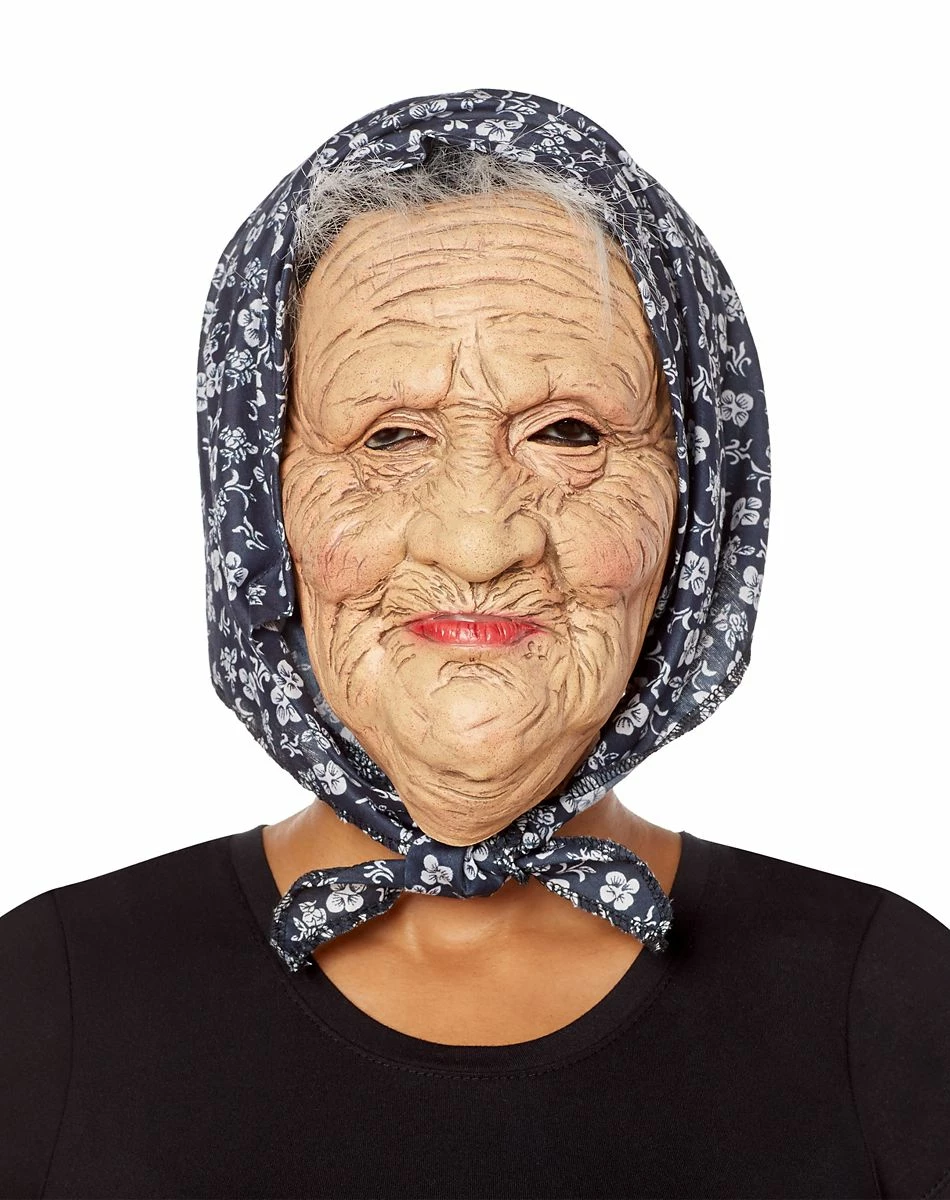 Pucker up, darling! Grandma has missed you. Transform yourself into a slightly spooky nanny with this Grandma Half Mask! Featuring a floral bandana, realistic wrinkles, and a tuft of faux gray hair, this mask looks a little TOO real.