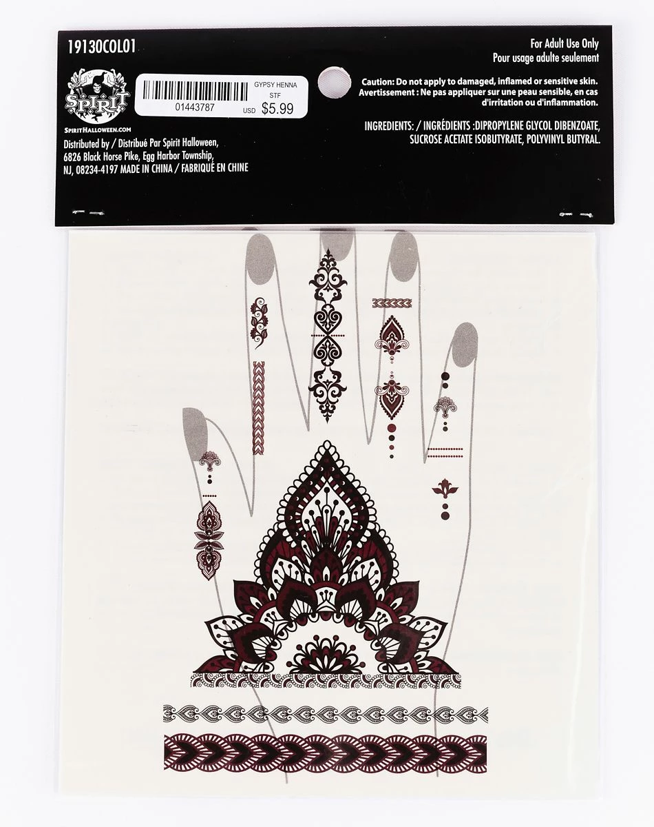 Add a little more to your gyspy costume with these temporary hand tattoos! These tattoos are water-transfered and will make you look like the real deal!