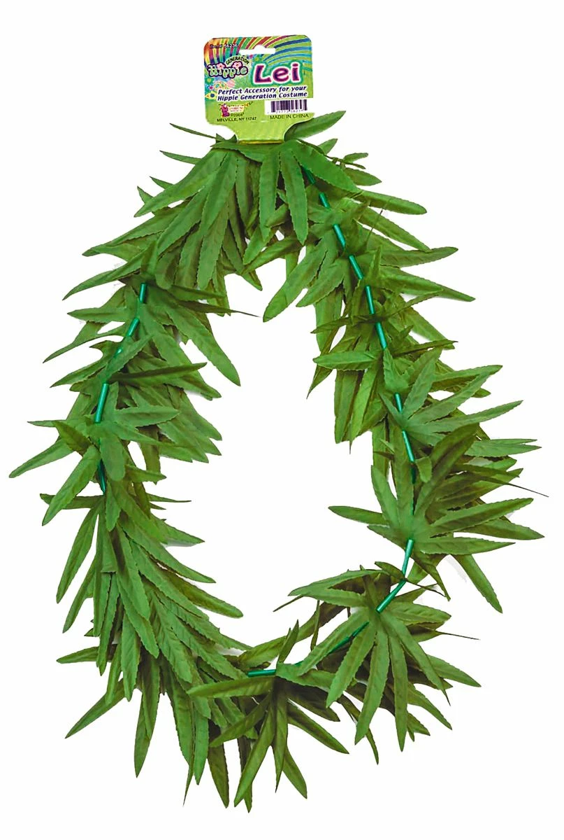 You’ll be the high-light of any luau with the Hippie Leaf Lei. This Lei is covered in dozens of polyester green leaves. Put on your Hawaiian shirt and accessorize with some dreadlocks or purple glasses (sold separately) for a full hippie look!