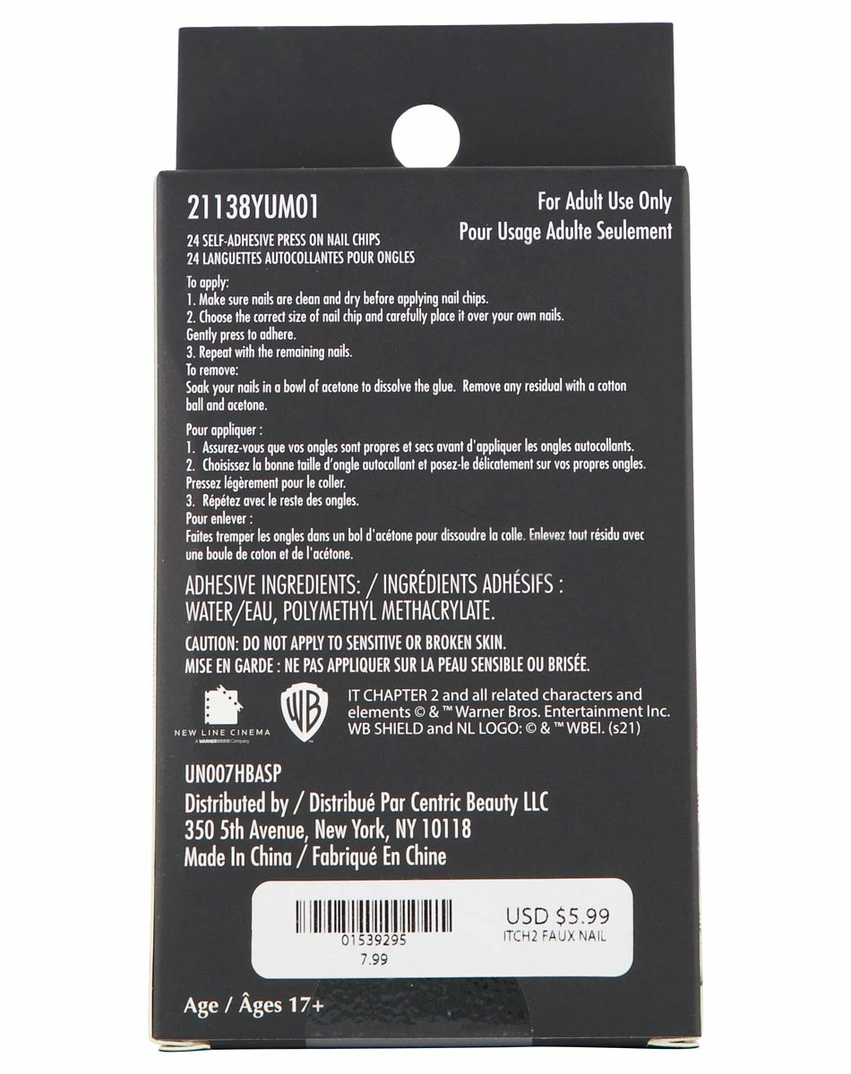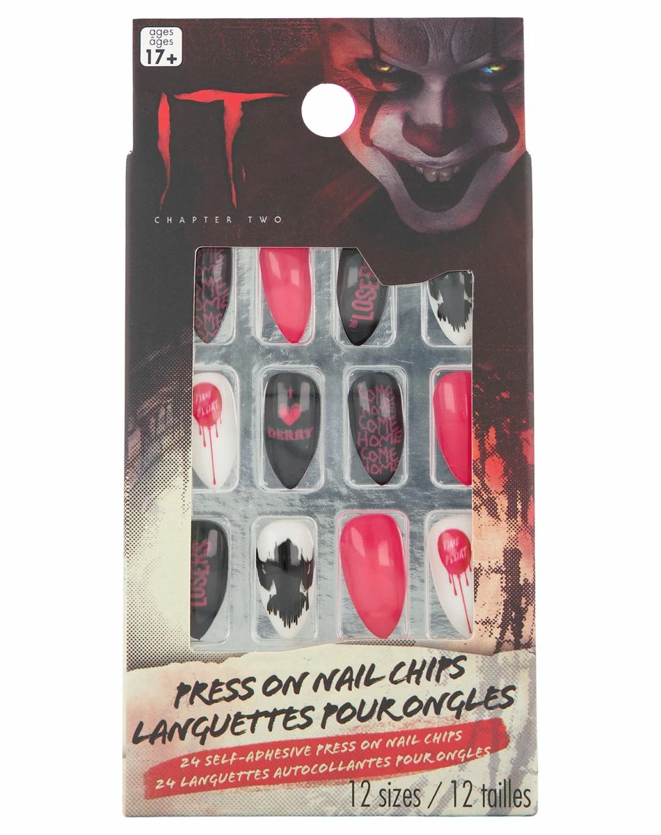 Give yourself a hand when it comes to upping the scare factor with these official It: Chapter Two Press On Nails! These nails feature images like a silhouette of Pennywise the Clown, a red balloon or say “I heart Derry,” making them perfect for any horror movie fan to wear at Halloween or any time.