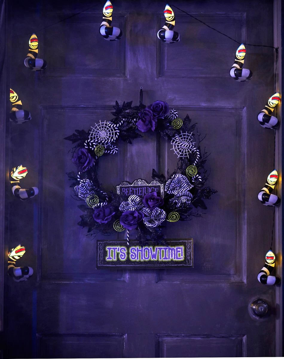 Decorate your home while showing love for your favorite movie when you get your hands on this officially licensed It’s Showtime Wreath. This Beetlejuice wreath is an easy way to decorate any door and will look amazing along with the rest of your Halloween decorations.
