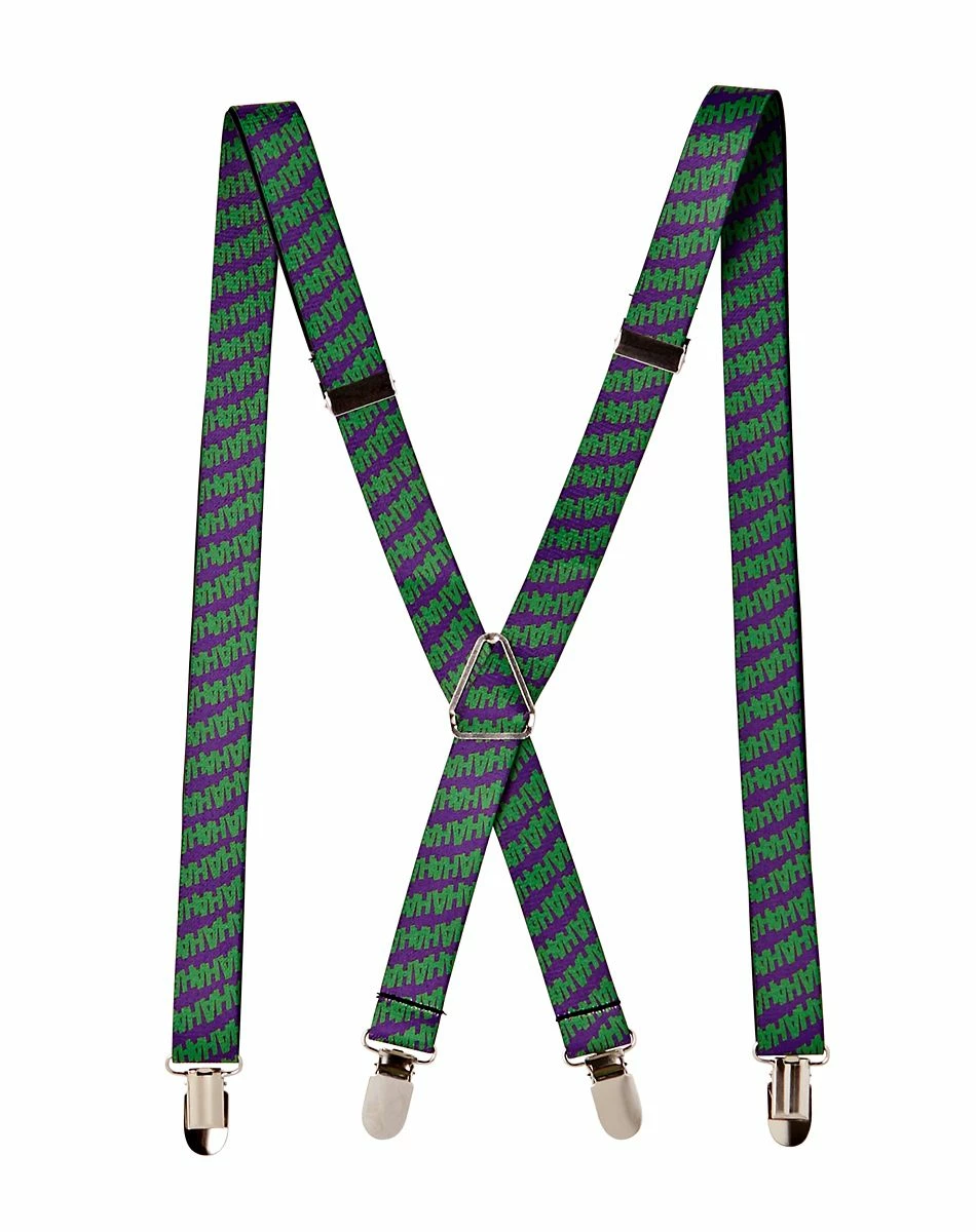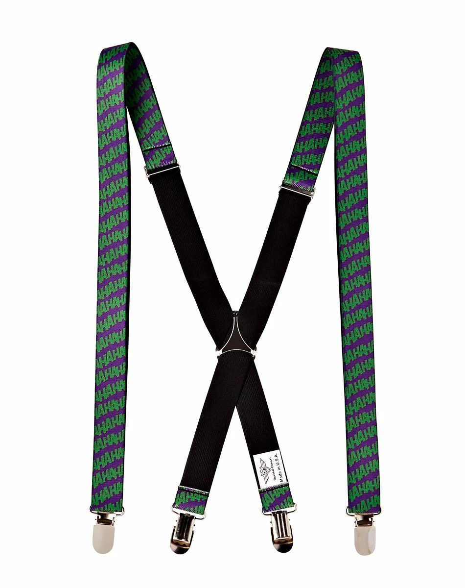 Verify your villain status in the officially licensed Joker Suspender. These adjustable, Joker print suspenders are no joke. Get em’ before Batman swoops in!