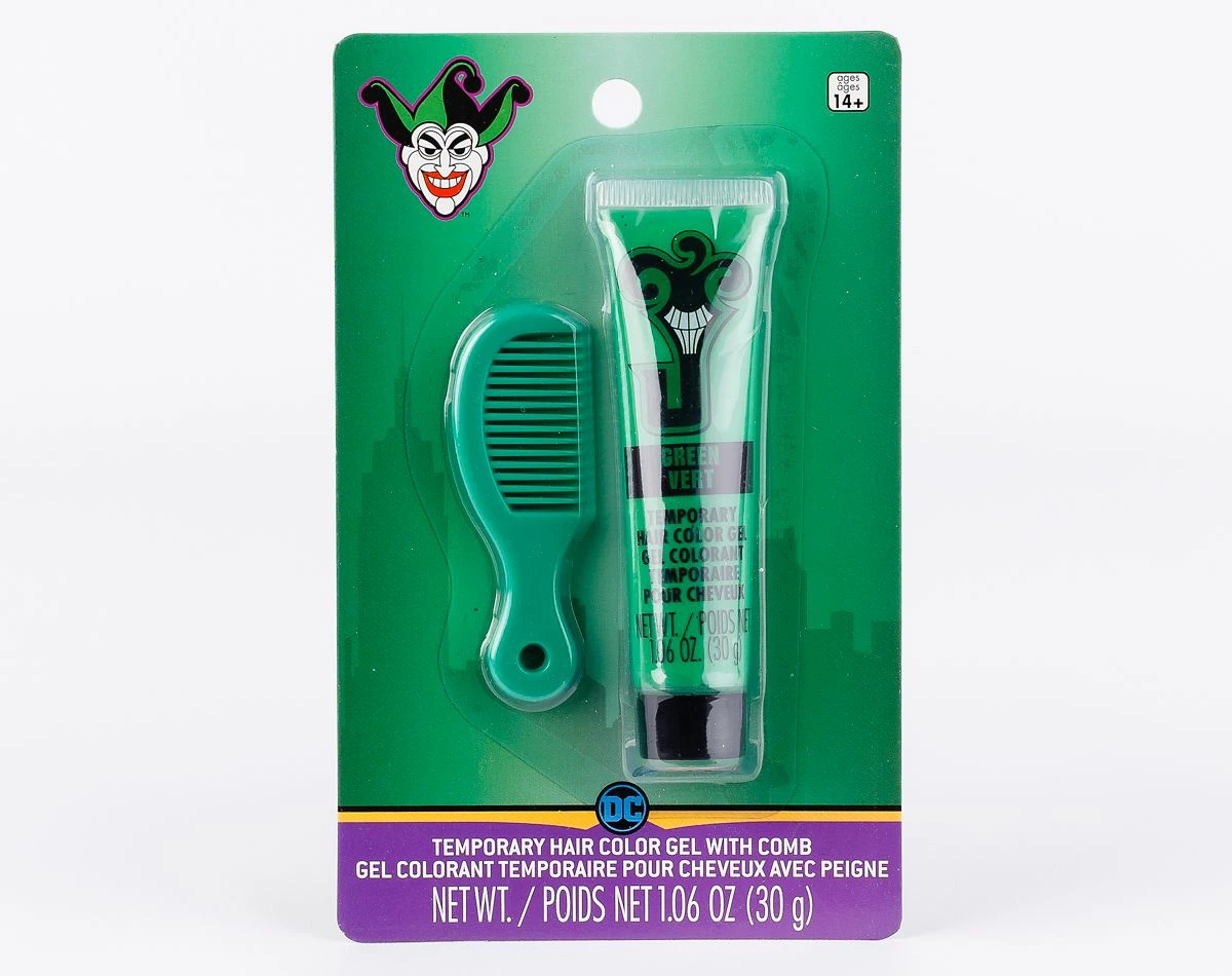 Transforming into the Clown Prince of Crime has never been easier than with this officially licensed Joker Temporary Green Hair Gel with Comb. With this temporary hair gel, you’ll be able to rock the same green locks that the Joker sports in the movies and comics. Better start practicing that maniacal laugh because you’ll be doing it a lot once you turn yourself into The Joker for Halloween.