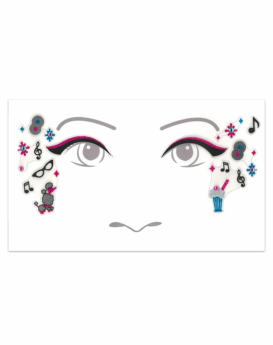 Is your child ready to dance and sing the night away? With this Kids ’50s Face Decal, there will be a lot of fun through music, milkshakes and flowers! You can’t go wrong with this selection to complement your ’50s costume this Halloween.